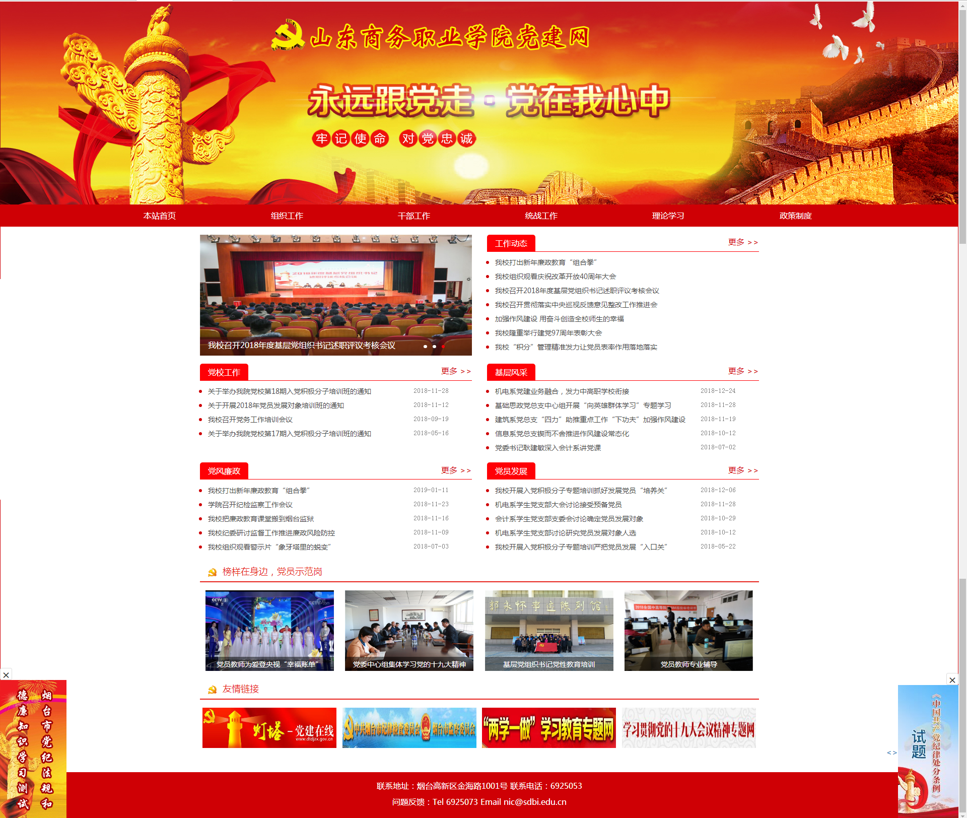 为深入贯彻落实习近平新时代中国特色社会主义思想和党的十九大精神,积极推进学院“互联网+党建”工作迈上新台阶,经组织人事处精心筹划、认真准备,学院党建专题网站(http://dangjian.sdbi.edu.cn/)正式上线,党建专题网站是推动学院党的建设和组织工作与时俱进、改革创新的重要举措,更是推进全面从严治党向基层延伸、向纵深发展的有力抓手。